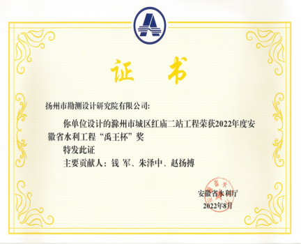 在經(jīng)過(guò)申報(bào)單位申報(bào)、主管部門審查推薦的基礎(chǔ)上,經(jīng)資格初審、專家組現(xiàn)場(chǎng)復(fù)查、評(píng)審委員會(huì)評(píng)審、廳網(wǎng)站公示、主管部門批準(zhǔn)等評(píng)選程序后,我公司設(shè)計(jì)的“滁州市城區(qū)紅廟一站工程”“滁州市城區(qū)紅廟二站工程”2個(gè)項(xiàng)目喜獲“禹王杯”獎(jiǎng)項(xiàng)。